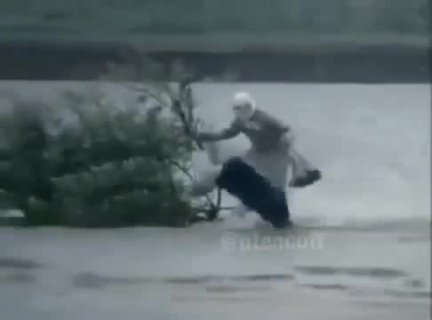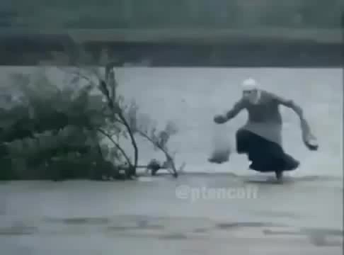 Бабка бегает по воде радуясь покупками