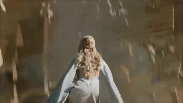 Daenerys Targaryen flying with her dragon, Drogon (S05E09)