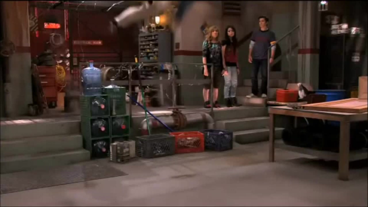 Gibby (iCarly) falls from the ceiling