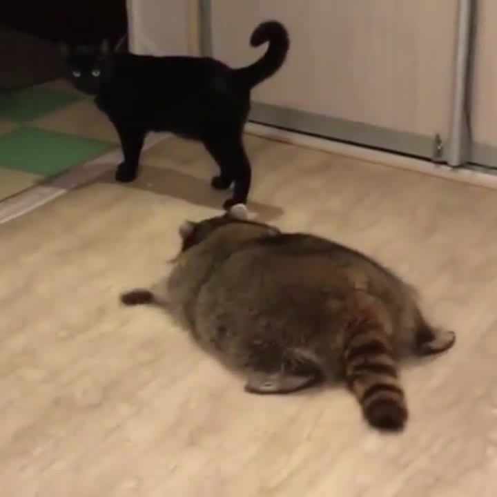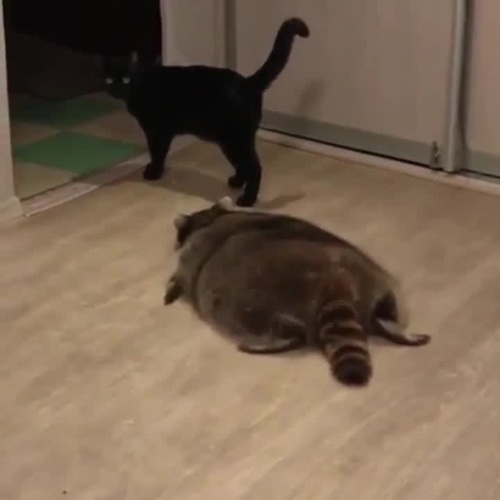 Stealth raccoon eat cat