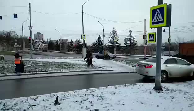 Стрижка заснеженного газона в Красноярске