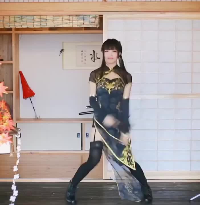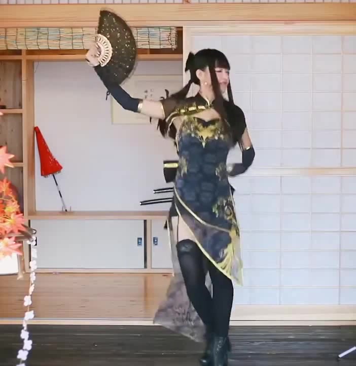 Китаянка танцует в необычном костюме